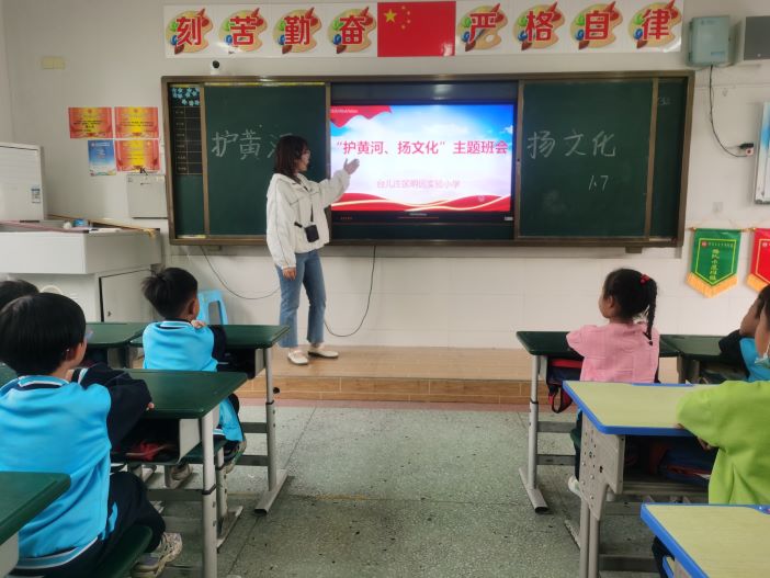 學校組織了以“傳承黃河文化 弘揚黃河精神”為主題的演講比賽,隊員們從黃河流域的人物故事、文化藝術等展開演講,講述自己心中的黃河故事。各中隊利用主題班會進行宣傳,在班級形成人人環保的風氣,營造了人人參與環境環保的良好氛圍。除此之外,隊員們以傳承、保護、弘揚黃河文化為切入點,用自己獨特的視角,繪制手抄報、書寫征文,積極參與到活動中來。