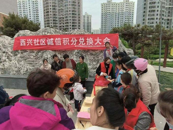 在西興社區,開展“誠信積分兌換大會”活動,活動現場,通過設置趣味套圈等游戲項目,現場擺放書籍、文具、兒童玩具、代金券等各種獎品,居民群眾可以參與活動或者使用自己的誠信積分來兌換這些獎品。同時專門安排了社區工作者、網格員等工作人員對誠信體系建設的宣講以及榴花分注冊等宣傳,在歡快熱烈氛圍的襯托下,居民們積極參與和配合。
