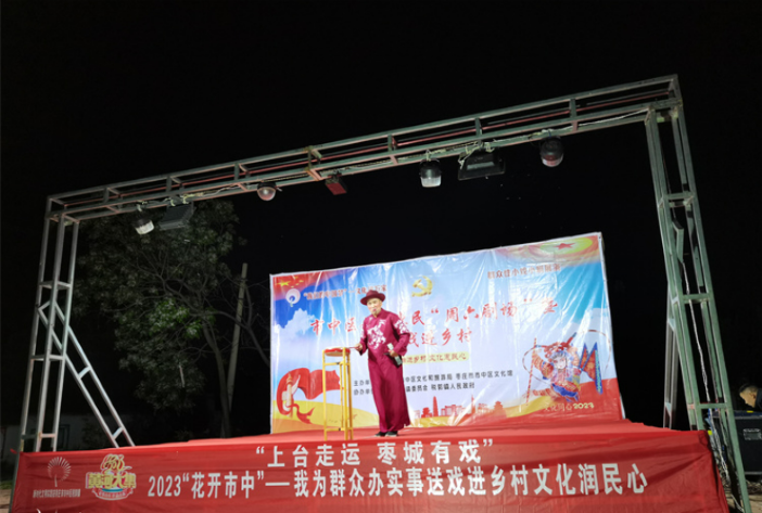 為進一步弘揚優秀傳統文化,豐富廣大群眾精神文化生活,叫響“花開市中”志愿服務品牌,5月4日晚,棗莊市市中區稅郭鎮文旅體辦在野崗埠村開展了“上臺走運 棗城有戲”2023我為群眾辦實事送戲進鄉村文化潤民心惠民演出活動。