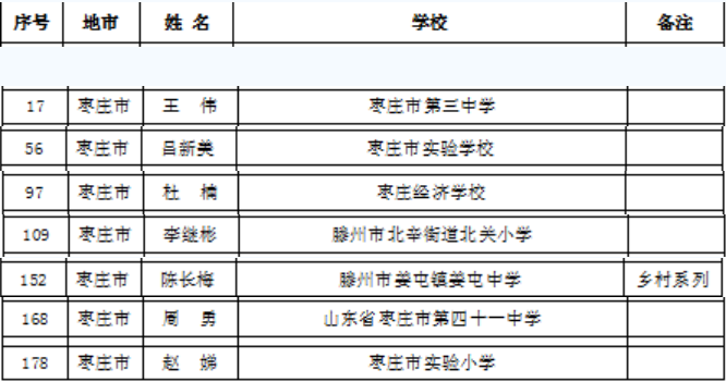 齊魯名班主任建設(shè)工程人選(棗莊)