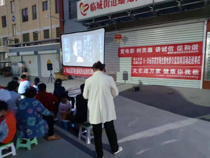 夕陽美如畫,清風(fēng)醉晚霞。5月25日晚上,棗莊市薛城區(qū)臨城街道蟠龍社區(qū)居委會(huì)門口,居民們排起了長(zhǎng)隊(duì)等待電影開播?!班従觽冸y得有機(jī)會(huì)聚在一起拉家常、看電影,大家搬個(gè)小凳一起看電影,鄰里之間更親近了,希望居委會(huì)以后能夠多多舉辦這類活動(dòng)。”華眾小區(qū)居民張阿姨高興地說。