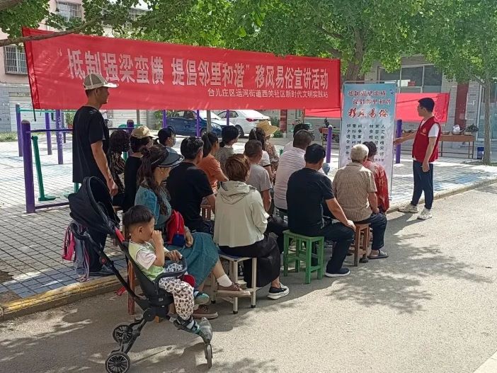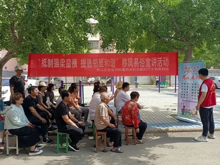 為持續(xù)深入推進(jìn)移風(fēng)易俗,充分發(fā)揮《市民公約》的作用,以實(shí)際行動(dòng)倡導(dǎo)文明新風(fēng)尚,引導(dǎo)居民講文明、樹(shù)新風(fēng),切實(shí)提升居民的文明道德修養(yǎng),激發(fā)群眾自治、德治活力。近日,運(yùn)河街道西關(guān)社區(qū)以新時(shí)代文明實(shí)踐站為依托,開(kāi)展"抵制強(qiáng)梁蠻橫,提倡鄰里和諧"移風(fēng)易俗宣講活動(dòng)。