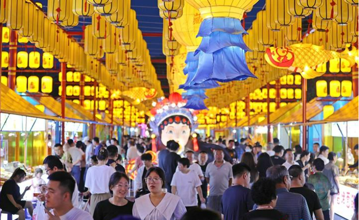 日前,隨著暑假的到來,薛國不夜城熱度不減。市民們賞夜景、逛集市、品美食,“夜市經濟”豐富了人們的夜生活,也釋放出城市發展新活力。(記者 王龍飛 通訊員 王章達 攝)