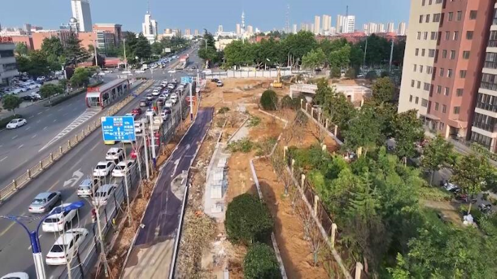 在青檀路與光明路路口西南角,正在施工建設(shè)的檀光西游園已經(jīng)初見雛形,部分大型樹木已經(jīng)栽植到位。園內(nèi)兩輛挖掘機(jī)正在挖掘清理步道,工人們有的在焊接鋼架,有的在砌墻,施工現(xiàn)場(chǎng)一派繁忙景象。待全面竣工后,檀光西游園將成為附近市民休憩玩耍的新去處。