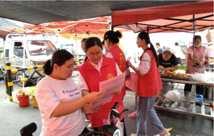 在農(nóng)村大集,工作人員和志愿者采取集市擺攤設(shè)點、懸掛條幅等方式,向商家攤販和趕集群眾發(fā)放宣傳單并講解垃圾分類知識,倡導(dǎo)大家從日常生活入手、從小事做起,爭當(dāng)垃圾分類的宣傳者、參與者。