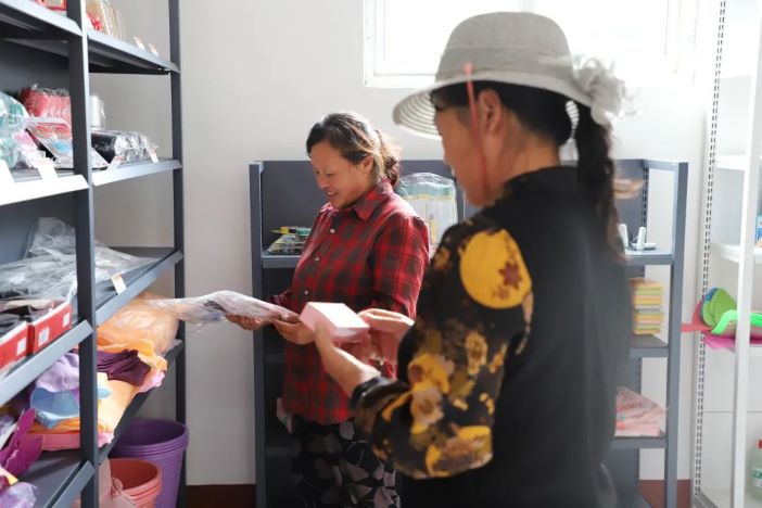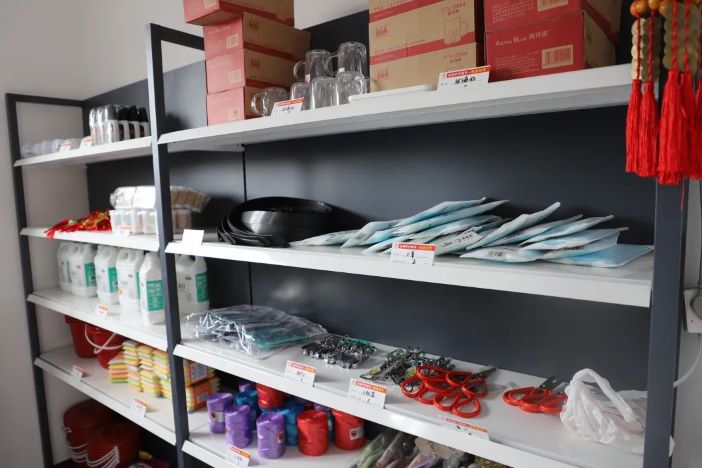 貨架上整齊擺放著清潔棉、筷子、漏筐等日常生活用品,與其他超市不同的是,這里的商品不標注價格,而是“明碼標分”,村民在這里不用付款,只需根據(jù)需求用積分兌換生活物品。除了到現(xiàn)場進行兌換外,村民也可通過“信用底閣”小程序進行積分查詢兌換。村民吳廣英說:“家里洗潔精用完了,剛想去想去超市買,一想俺莊上有積分超市,我還有50分,我正好來到換了一桶。”