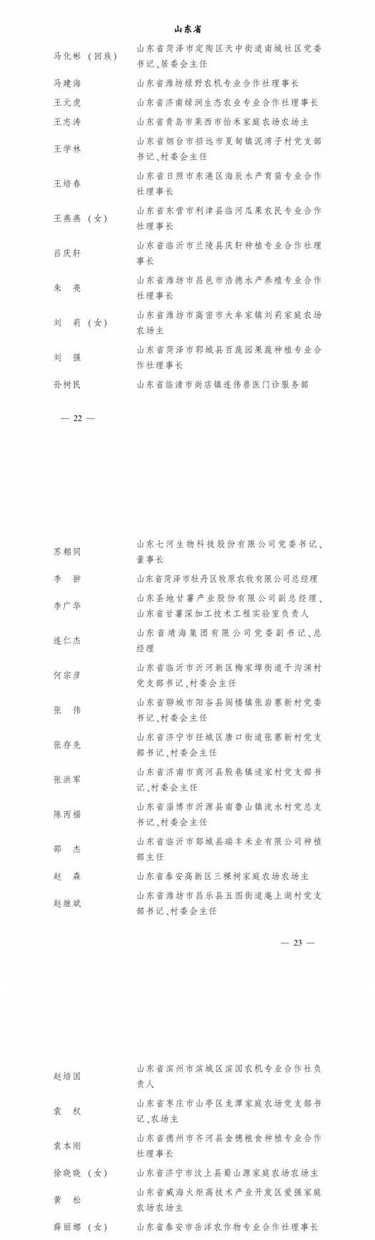 全國農(nóng)業(yè)農(nóng)村勞動模范表彰名單