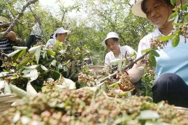 摘花椒是枯燥的。一只手抓穩樹枝,另一只手的拇指和食指小心翼翼地將成熟的花椒從長著寬寬葛針的枝頭摘下來——記住一定要小心,因為很容易被刺到的。