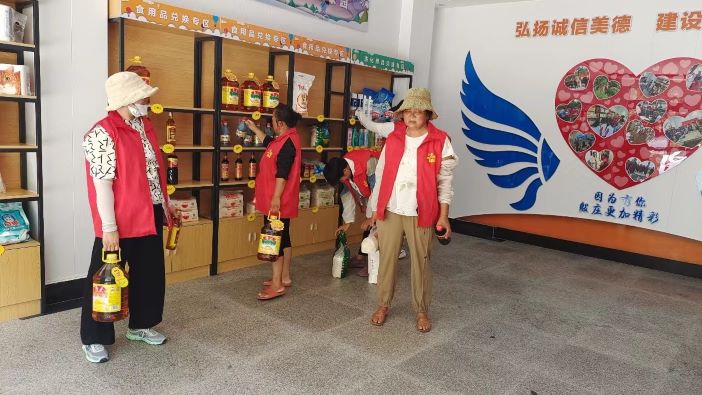“杜主任,你看我有多少分了,我想換包鹽……”迎著夏陽,棗莊市薛城區沙溝鎮殷莊村的“美德信用超市”里熱鬧非凡,不時有村民前來挑選兌換心儀的商品。貨架上整齊擺放著鹽、醬油、面條等日常生活用品和兒童的學習用品,與其他超市不同的是,這里的商品不標注價格,而是“明碼標分”,村民在這里不用付款,只需根據需求用積分兌換生活物品。除了到現場進行兌換外,村民也可通過“誠信薛城”小程序進行積分查詢兌換。村民張大媽說:“家里鹽用完了,剛想去超市買,一想俺村有美德信用超市,我還有0.5分,我正好來到換了一包。”