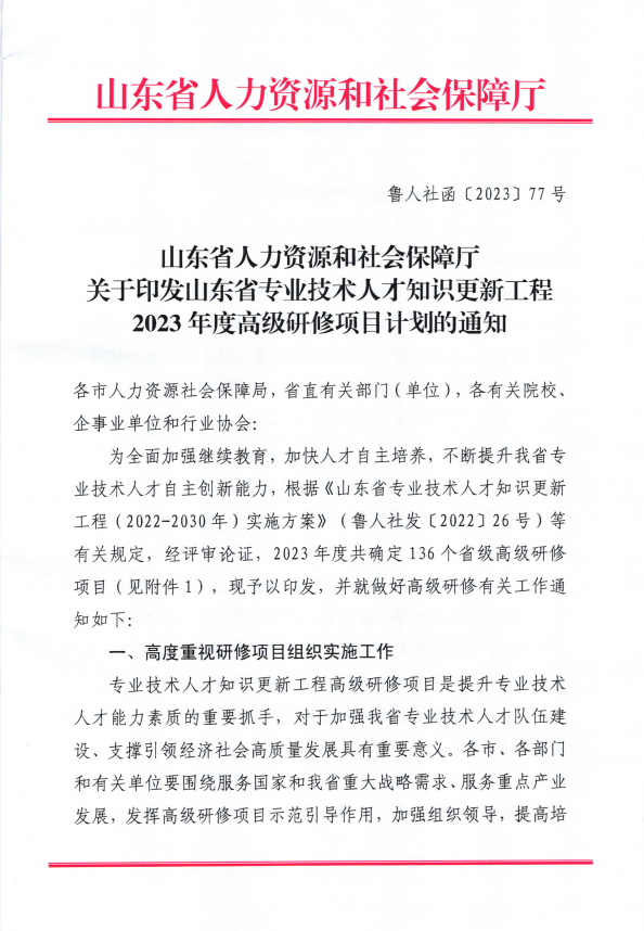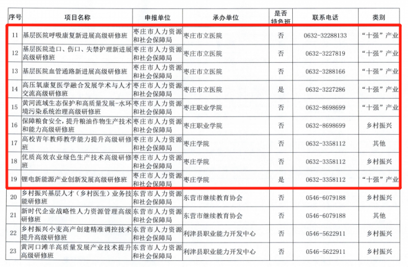 為全面提升專業技術人才能力素養,推動人才鏈、教育鏈、創新鏈、產業鏈深度融合,我市圍繞重點產業實施專業技術人才知識更新工程。近日,山東省人力資源和社會保障廳公布山東省專業技術人才知識更新工程2023年度高級研修項目計劃,棗莊市9個項目成功入選,其中,棗莊學院“鋰電新能源產業創新發展高級研修班”、棗莊市立醫院“高壓氧康復醫學融合發展學術與人才交流高級研修班”獲批為特色班。