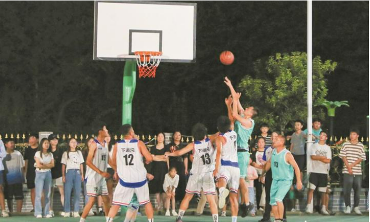 當(dāng)晚,下道溝村籃球場人山人海、熱鬧非凡,村民們歡聚一堂,共赴籃球“盛宴”。在首先舉行的三人制籃球比賽中,市中區(qū)代表隊獲得了第一名。隨后進行的“村BA”比賽,下道溝村險勝大郭莊村,奪得冠軍。