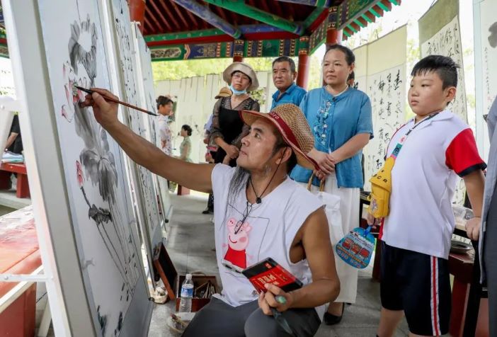 8月17日,滕州市級(jí)索鎮(zhèn)首屆“鄉(xiāng)村振興、文化藝術(shù)節(jié)”在七星湖濕地公園舉行,戲曲演唱、手造進(jìn)鄉(xiāng)村、漢服體驗(yàn)、書(shū)畫(huà)寫(xiě)生等豐富多彩的文化活動(dòng)讓村民目不暇接,流連忘返,爭(zhēng)相觀看。