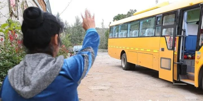清晨,山山寒色、裊兮秋風,群山環抱的米山頂村在晨露中醒來,有老人扛著農具去地里干活,也有老人步履蹣跚地趕第一班公交車進城。7點鐘,村民晁廣鳳牽著她的三個小孫女來等校車。10月7日是假期結束開學的日子,也是米山頂村的娃娃們第一次坐上校車的日子。