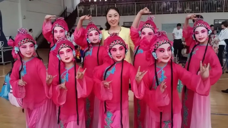 說起東湖小學的柳琴戲社團在市中區乃至全市都小有名氣,學校一直注重中華優秀文化藝術傳承教育,將國家級非物質文化遺產項目“柳琴戲”納入學校“特色課程”。聘請國家一級演員、省級非遺傳承人邵曉環老師定期來校指導教學,規范課程開設,并挑選優秀學員成立了柳琴戲社團。王妍積極輔助邵老師傳授柳琴戲,組織孩子們練習基本功,學習唱腔和表演,在邵老師工作忙不能來上課的情況下,仍然堅持不懈地開展柳琴戲教學。邵老師常常說道:“王老師是我最好的助教,也是我最得力的助手。東湖小學因為有領導的支持和王老師的助教,使柳琴戲得到傳承和發揚,我特別開心,我們有信心讓柳琴戲在東湖小學傳承下去并發揚光大!”在邵老師和王老師的共同努力下,柳琴戲社團的孩子們在山東省戲劇大賽中榮獲二等獎。先后受邀參加山東省現場會,“齊魯學子青春國學薈”,市、區春節聯歡晚會,消夏晚會等三十余場演出。2019年6月,孩子們登上了中央11臺的戲曲頻道,她們用婉轉的唱腔、傳情的眼神、優美的動作傳承著國家級非物質文化遺產。小學六年的訓練為孩子們打下了堅實的戲曲基本功,有兩名孩子以優異的成績考上了戲曲學校繼續深造學習。長期堅持,終有回報。2021年11月,東湖小學被評為“全國中小學中華優秀傳統文化傳承學校”。王妍撰寫的《傳承非遺柳琴戲,弘揚中華優秀傳統文化》案例,榮獲山東省美育改革創新案例一等獎。2023年4月,省教育廳關工委領導到學校調研工作時,柳琴戲的傳承贏得了領導們的一致好評和高度贊揚。