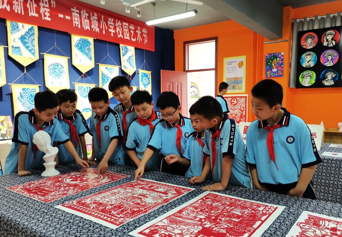 下午5點,在南臨城小學美術教室,三年級的學生小飛和15名同學正在用落葉DIY創意手工。環顧四周,教室墻壁上掛滿了社團學生們的手工作品,琳瑯滿目。“放學后全是我們自由活動時間,我們不僅可以去社團學習畫畫,還能去武術社團學習五步拳、打籃球、踢足球......特別豐富!”小飛開心地說。