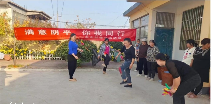 “套中一個嘍,大嫂子手真準,第一個就套中了……”近日,在棗莊市嶧城區陰平鎮大南莊村新時代文明實踐站內,一場村級趣味運動會剛剛開始,志愿者張桂蓮正忙著套圈項目的計數工作。