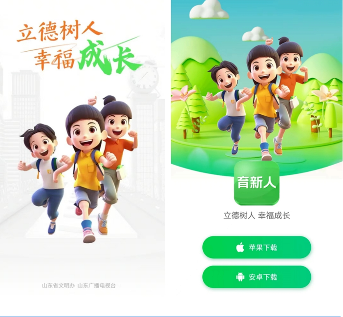 第一步:掃碼下載“育新人”客戶端(蘋果手機需點擊信任軟件 流程:設置—通用—設備管理—Shandong Radio and Television New media )