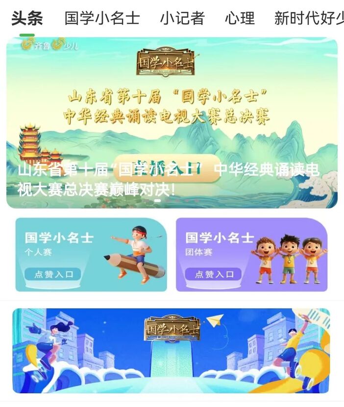 為深入實施全環境立德樹人,加強和改進未成年人思想道德建設,傳承中華優秀傳統文化,山東省第十屆“國學小名士”中華經典誦讀活動省賽正式開始了,快來為我市代表隊和選手點贊吧!