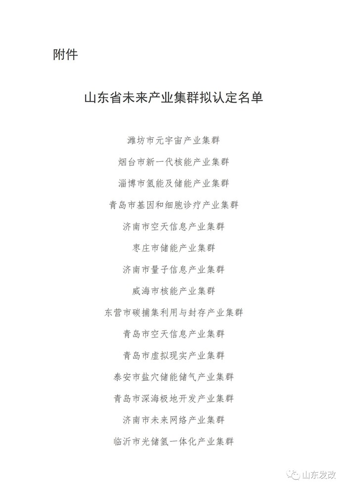 為培育新的經濟增長點,打造未來產業競爭新優勢,按照省委、省政府部署要求,省發展改革委在各市發展改革委提報的基礎上,經專家審核和綜合評價,提出了山東省未來產業集群擬認定名單,現予以公示,公示期為2023年12月5日至11日。公示期間如有異議,請以書面形式將意見反饋我們,個人反映請署真實姓名及聯系方式,單位反映請加蓋公章。
