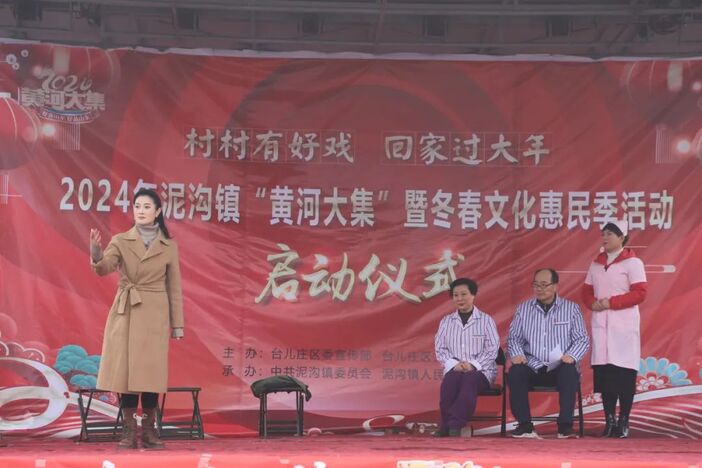 歲物豐盛,冬韻悠長。為滿足村民日益增長的美好生活需要,進一步豐富村民的精神文化生活。1月3日,泥溝鎮(zhèn)舉行2024年冬春文化惠民季暨“黃河大集”活動啟動儀式,將文藝演出直接送到群眾家門口。