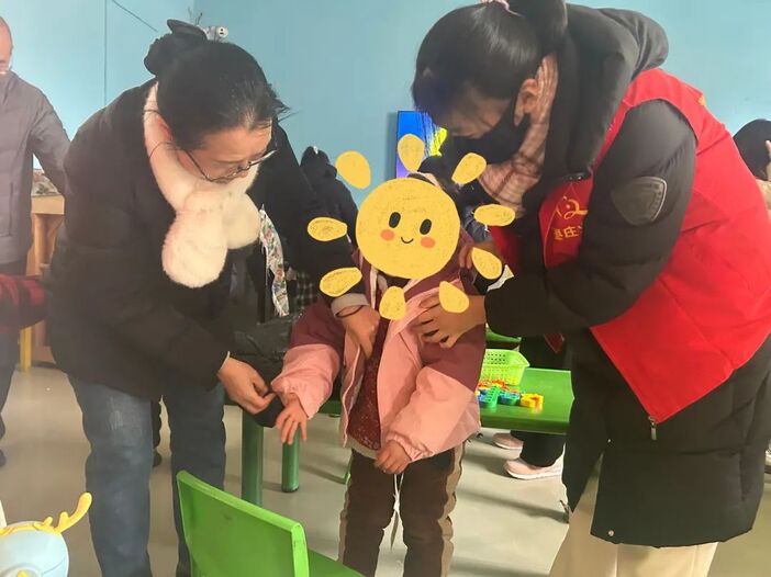 活動中,鎮(zhèn)社會保障服務(wù)中心主任張秋霞和志愿者們一起為柳泉村的10名留守兒童試穿棉衣,讓他們感受社會大家庭的溫暖。一件小小的棉衣,對別的孩子來說不算什么,但是對于留守兒童來說,卻是一份希望、一份關(guān)懷,一份鼓勵,一份最美好的祝福。