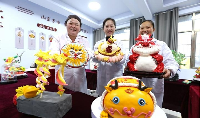 魯南花饃是山東省級非物質(zhì)文化遺產(chǎn),制作技藝距今有300多年歷史。臨近春節(jié),山亭區(qū)客運(yùn)總站工會花餑餑制作車間“忙”起來,當(dāng)?shù)赜羞^年做花饃習(xí)俗,今年定制龍型主題花餑餑的市民增多,每天訂單不斷,工人們加班趕做定制花餑餑。(記者 劉明 攝)
