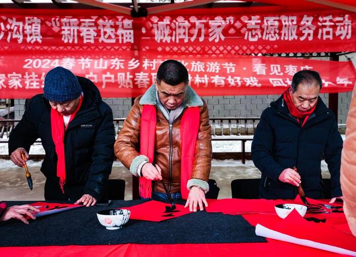 2月1日上午,棗莊市薛城區沙溝鎮文旅辦、文明辦、信用辦聯合開展2024春節山東文化旅游節沙溝鎮“新春送福·誠潤萬家”走進巖湖村志愿服務活動。一張張墨香飛揚的“福”字,為廣大人民群眾提前帶來了春節前的氣氛和新春的祝福,讓大家切身感受到中華傳統民族文化的魅力。