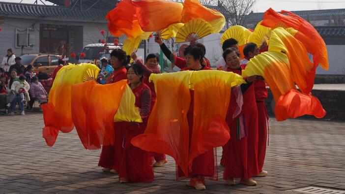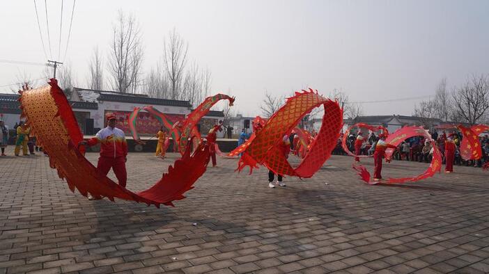 2月10日,農歷大年初一,位于棗莊市薛城區鄒塢鎮的劉莊村鑼鼓喧天。村委會門口,一支舞龍長隊高舉長龍,在村民們期待的目光中一路舞到村莊中部的許由廣場,為劉莊村的新春團圓大聯歡活動拉開了帷幕。
