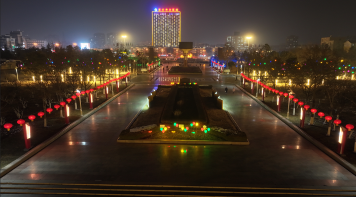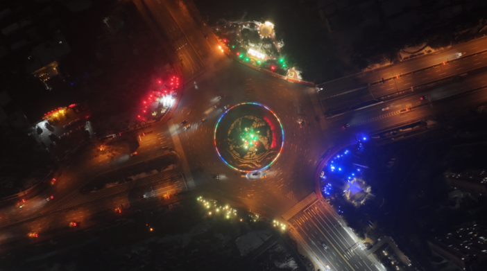 裝飾一新的光明路西外環(huán)轉(zhuǎn)盤