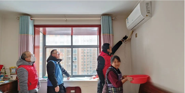 2月21日,新城街道紫光園社區網格員開展入戶“送暖”志愿服務活動時,發現一戶老人家中空調漏水,不能正常使用,導致室內溫度較低。經過網格員的仔細排查后發現,由于空調落水管堵塞,導致出水管逆流,臥室出現泡水情況,存在較大的安全隱患。對此,網格員立即切斷了家中電源,并聯系物業人員前來維修處理。