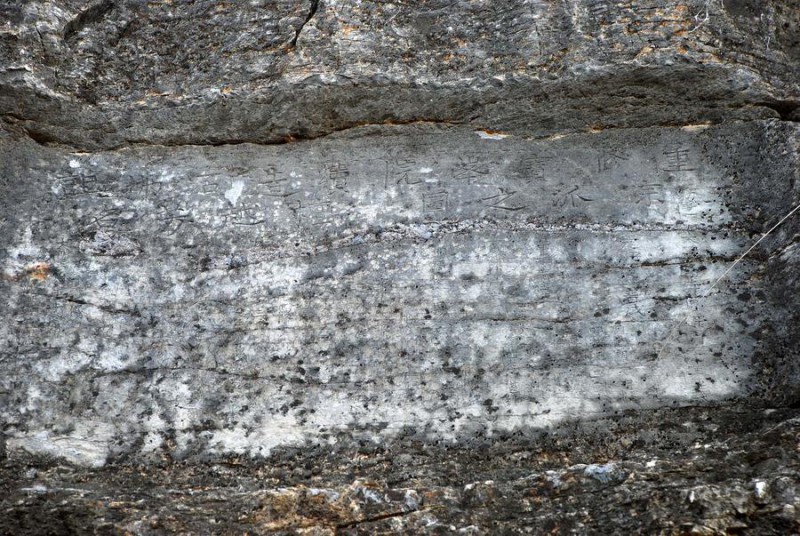 造像下側(cè)的絕壁之上,鑿刻有“古剎寶峰禪林寺”字樣,有文載:“始建于宋朝,元五年重修;元?至元二年重修;明正德元年重修”。現(xiàn)建筑物已圯,據(jù)石壁上所刻文字可知,該名勝群數(shù)禪林寺建筑規(guī)模最大,僧侶最多,擁有大量的寺產(chǎn)。從造像特征推斷,左二佛一力士為唐代造像,雕刻技法嫻熟,線條流暢,造型勻稱,神態(tài)安詳,給人一種脫俗的感覺。右一佛一力士為明正德二年(公元1507年)續(xù)造,并建寺為寶峰院。清末,此處曾建佛祖殿,并立石碑一塊,刻有《佛祖殿碑記》。至20世紀(jì),寺殿無存,造像猶在。