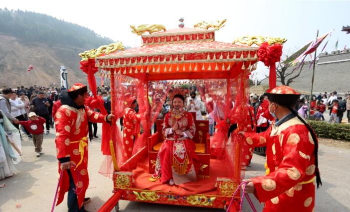 “未婚的小伙們,快快靠近了,拋繡球活動馬上開始了,看看誰的運氣好……”3月16日,在嶧城區陰平鎮杏花峪游園旁邊的國家AAA級旅游景區——嶧縣萬畝古棗園東大門城樓上,活動主持人手持大喇叭喊道,臺下一片歡呼雀躍,將杏花古會推向高潮。