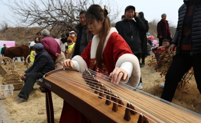 杏花古會以“賞花游”為核心,設“非遺”、古樸飾件、老味食品、老式農具等街區。穿粗布衣裳的商販、穿飄逸漢服的游客,讓古會充滿了古樸韻味。游客們邊欣賞杏花美景,邊品嘗老味美食,邊感悟粉皮、魯筆、藤編、土陶、鐵藝等“非遺”文化的魄力。