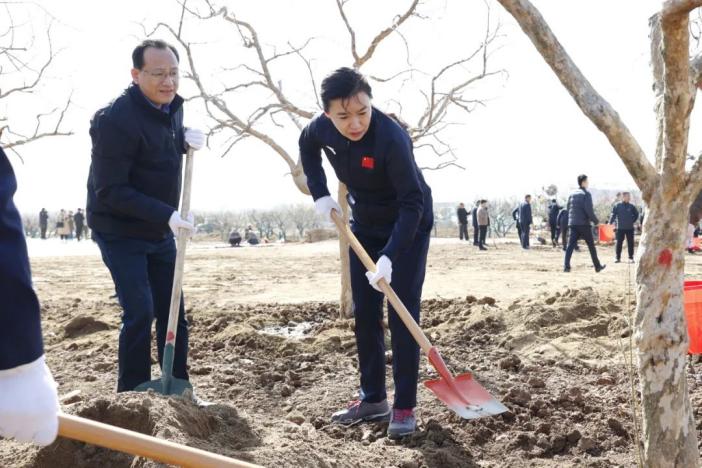 3月19日,市委書記張宏偉,市委副書記、市長翟軍,市政協主席張兵,市人大常委會主任邵士官,市委副書記、政法委書記張國洲等市級領導同志來到嶧城區榴園鎮榴園綠道北側的大理峪,與干部群眾一起參加義務植樹活動。