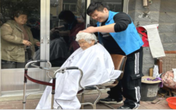 與此同時,志愿者們布置場地,擺放桌椅,為到場的老人提供愛心便民服務。“奶奶你想剪什么樣的發型”“要長一點還是短一點的”理發師耐心地向老人詢問,精心設計發型,在志愿者細致的服務下,老人們紛紛稱贊理發師的好手藝以及志愿者周到的服務。