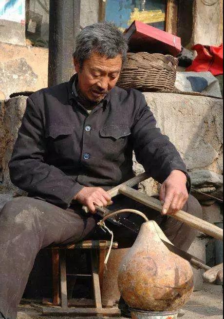 農人們把成熟的老葫蘆摘下來,挑選出個頭碩大、形態勻稱的,找個透氣通風的地方晾曬上幾天,等吸足了陽光完全干透了,用刀子將外面的那層老皮刮去,然后把葫蘆固定穩當,在居中的位置畫上一道線,小心翼翼地用鋸鋸開。