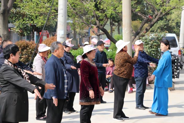活動邀請了棗莊市健身氣功協會志愿服務隊到北莊鎮為老人們傳授八段錦鍛煉技法。