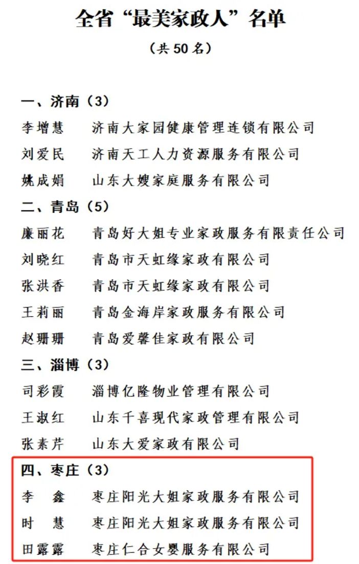 棗莊市3人榮獲全省“最美家政人”