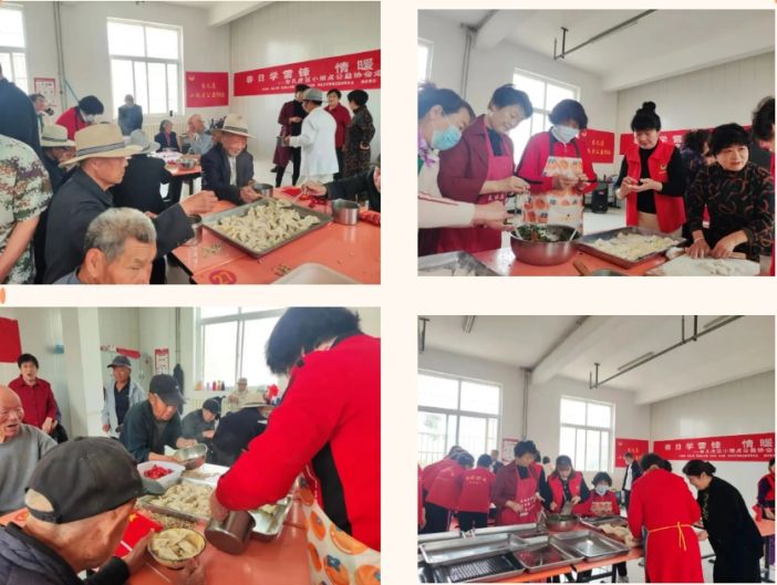 志愿者們圍坐在一起給老人們包餃子,志愿者們一邊包餃子,一邊與老人們分享著生活中的趣事。不一會兒,一個個形狀各異的餃子就在大家的共同努力下完成了。當熱氣騰騰的餃子端上桌時,老人們的臉上都露出了幸福的笑容。老人們品嘗著這份用心制作的美味,臉上洋溢著幸福的笑容,紛紛對志愿者們的手藝贊不絕口。