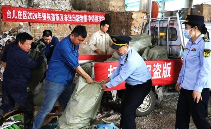 4月26日是第24個世界知識產權日,當日,臺兒莊區文化和旅游局聯合區市場監管局、區公安分局,開展2024年知識產權保護宣傳暨侵權盜版及非法出版物集中銷毀活動。