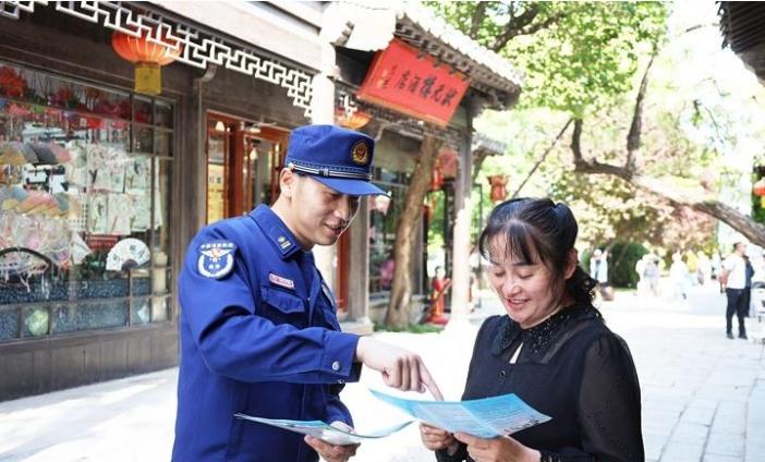 “五一”假期即將到來,近日,臺兒莊區消防救援大隊采取“檢查+宣傳”的工作模式,在臺兒莊古城等景區,對商鋪消防設施器材、疏散通道和出口、各項應急預案等進行了檢查,并隨機抽查了景點員工消防器材操作使用和消防基本技能掌握情況。同時,向群眾發放消防安全知識宣傳單,介紹如何報警、緊急情況如何逃生自救等知識。 (李秀明 攝)