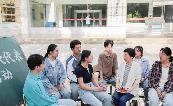 日前,市中區人大代表周峰巖(右二)來到她所在的選區(棗莊學院),開展代表接待日活動,聽取選民代表意見。