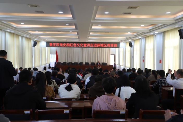 “1940年1月1日運河支隊在棗莊市薛城區周營鎮宣告成立。運河支隊的第一任支隊長孫伯龍,第二任支隊長邵劍秋,第二任政委孫振華分別是周營鎮中李莊、彎槐樹、單樓村人。許多運河支隊的隊員都是周營及周邊的父老鄉親......”5月9日,棗莊市黨史和紅色文化宣講走進薛城區周營鎮,全鎮180余名機關工作人員、村支部書記參加活動。