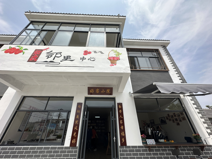 櫻桃滿樹點點紅,碧云合處好客來。前良鄰里中心—好客小院既是服務(wù)村民鄰里的紅色陣地,也是游客休閑小憩、游玩娛樂的體驗中心。好客小院對外服務(wù)區(qū)域包含“燈塔書屋”、兒童天地、紅色驛站等多種服務(wù)功能,由我村黨員志愿者定期值班,為村民游客提供“一站式”服務(wù)。在這邊的咖啡廳,櫻桃被裝進咖啡,“櫻你而來”“櫻有盡有”“櫻姿颯爽”……總有一款櫻桃咖啡適合你。