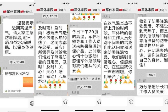 為提高軍休干部居家養老生活的安全感和舒適度,針對連日來持續的高溫天氣,棗莊市市中區軍休所立即行動,通過常態化電話慰問、發送微信群溫馨提示和上門走訪慰問等形式提醒軍休干部做好防暑降溫,盡量避免高溫外出,注意安全用電等一系列防暑小常識,希望他們在近期頻繁高溫下合理安排生活起居,有效避暑、快樂生活。
