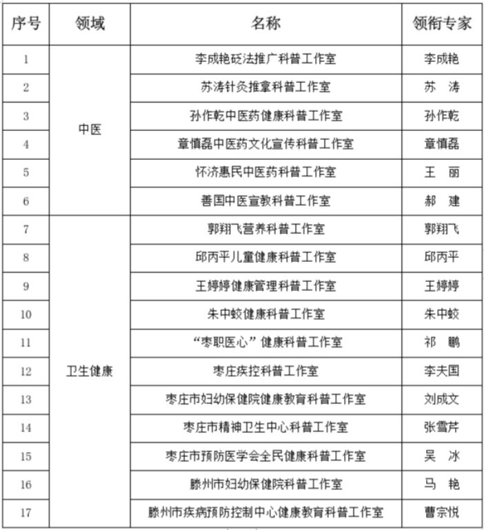 附件:第一批棗莊市科普專家工作室擬認定名單