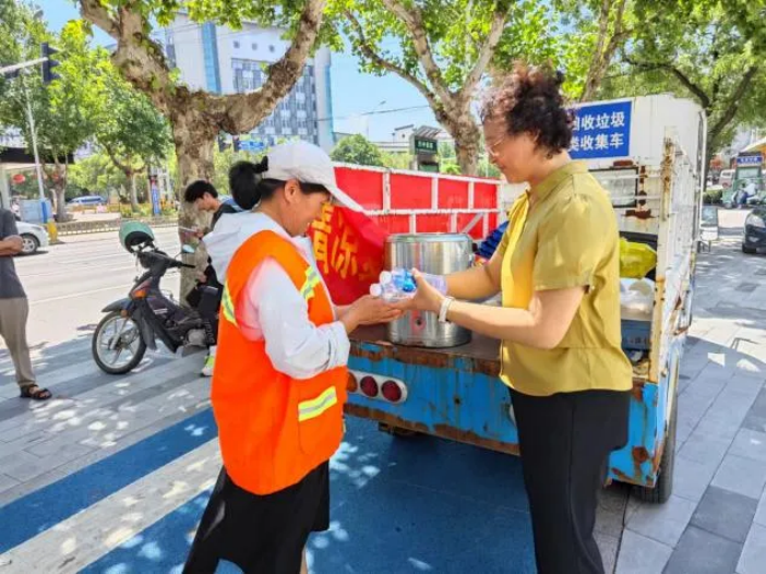 活動現場,環衛中心和林運社區的工作人員將精心準備的防暑降溫用品,如藿香正氣水、風油精、礦泉水等,以及清涼解渴的綠豆茶送到環衛工人手中。一份份清涼,一聲聲問候,猶如夏日里的涼風,沁人心脾。