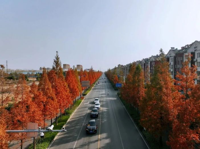 隨著城市持續發展,臺兒莊區行道樹種植理念也緊跟時代步伐,深度剖析其地域特色、氣候條件、土壤結構及樹木的生態與美學價值等多個方面,遵循多樣性與適土化策略,精心策劃并執行了一系列道路綠化項目,既扎根鄉土樹種,又巧妙融入新優品種,實現了從“粗枝大葉”到“精雕細琢”的華麗轉身。如在臺中路旁,廣玉蘭靜默守望,四季常青,六月花開,芬芳馥郁,添一抹清新于、炎炎夏日中;云林路上,銀杏葉黃,秋風輕拂,滿目金黃,鋪就了一條通往冬日的詩意長廊;文化路兩側,水杉挺拔,秋意漸濃,漸染金黃,與古運河水交相輝映,繪就一幅幅秋日勝景……通過對不同的樹種進行搭配,打造了各具特色的道路景觀,實現了“一路一景”的景觀效果,既滿足生態、經濟的要求,又滿足健康、安全、宜居的需求,不僅為綠道提供了遮陽功能,還增強了綠道的生態效應和觀賞性。作為城市中的綠色脈絡,它極大地豐富了生物的多樣性,增強了生態系統的自我調節能力,讓城市的每一次呼吸都更加清新。