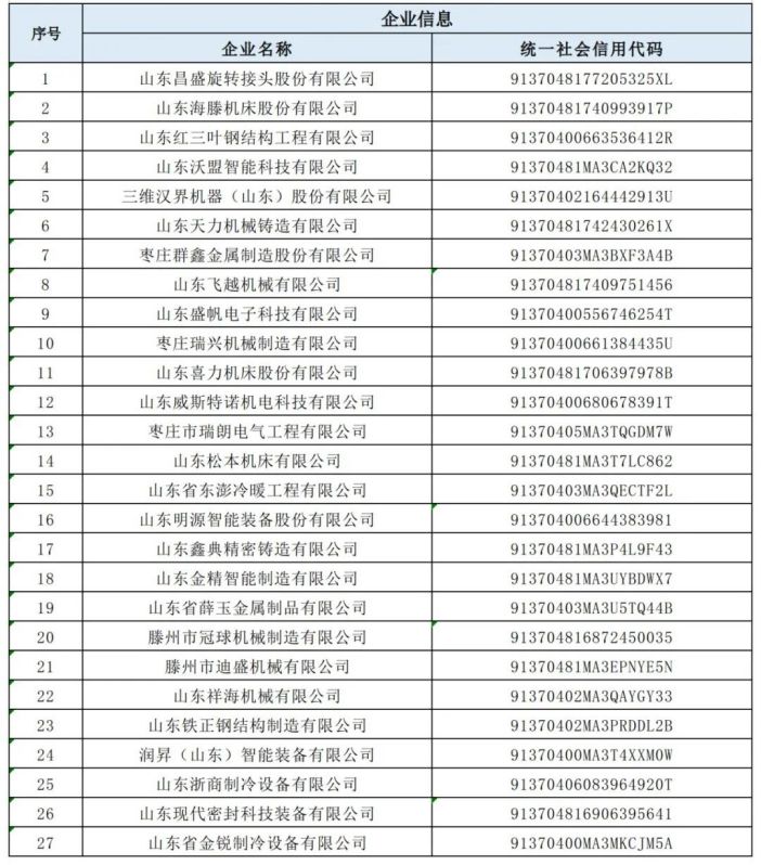 近日,山東省科學技術廳公示了山東省2024年第2批擬入庫科技型中小企業名單,其中,我市高端裝備產業共有27家企業成功入選名單。