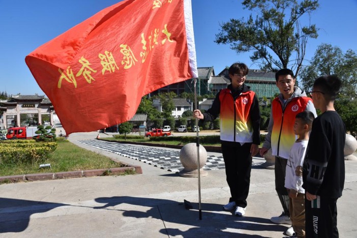 在古城東門,退役軍人志愿者胡艷浮一邊指導游客出行,一邊告訴游客,“我們這里停車是免費的,有收費的你們隨時找我。”
